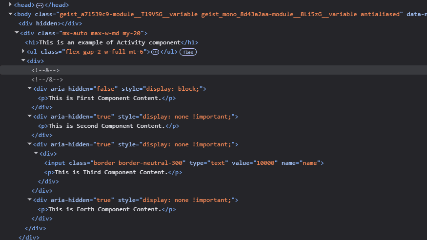 [!CAUTION] Caveat: Because <Activity> keeps the DOM nodes in the tree, using it for hundreds of heavy components simultaneously can increase your app's memory footprint.It is best used for high-level views or complex forms rather than every small UI element.